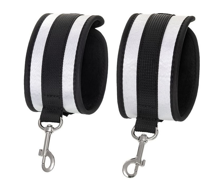 Наручники — классический предмет для игры в подчинение, обязательный для начинающих и опытных поклонников БДСМ. Блестящий во всех смыслах аксессуар для ограничения свободы: сатиновый материал поблескивает, когда на него падает свет. Необычное сочетание серебристого и черного, совсем нехарактерное для классического исполнения аксессуаров в стиле БДСМ, придает изюминку и новизну. Подчиненный с таким аксессуаром выглядит неотразимым. Застежка велкро позволяет зафиксировать руки любого размера. Между собой наручники скрепляются карабинами, практически не оставляя свободы действий. Никакого послабления, только полное подчинение своему Доминанту, где бы ни были зафиксированы руки: впереди или за спиной. Используйте дополнительно цепочку для расширенных возможностей фиксации положения рук. Начните игру в подчинение с этим аксессуаром, и вы поймете, как развивать свою чувственность с помощью ограничения свободы одного из партнеров. Ширина - 5,5 см. Длина сцепки - 8 см.