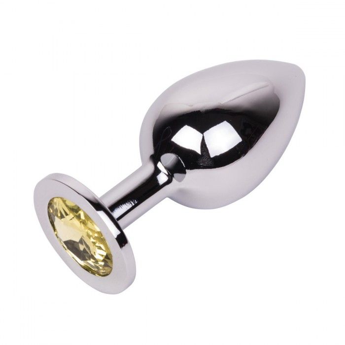 Гладкий большой плаг из отполированной до блеска стали с кристаллом лимонного цвета в основании. Металл - материал с большой теплопроводностью, сначала он будет прохладным, но быстро нагреется до температуры Вашего тела. Стальные игрушки можно нагревать или охлаждать с помощью воды.